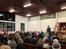 Gil Hoffman, Chief Political Correspondent and Analyst For the Jerusalem Post told a crowd of some 75 people at Adas Yeshurun Herzlia synagogue that in his estimation there would not be third elections in Israel. Rather in his view "the most likely scenario is a national unity government" between Likud ("not necessarily with Netanyahu") and Benny Gantz's Blue &White party. Netanyahu was given the first mandate to form a government and failed, and Gantz has until Wed Nov 21 to form a government , and then after that there are 21 days given to see if any other parliamentarian can form a government. If no one does there will be a 3rd election that will fall on Purim.