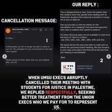 SJP complained that UMSU Executives “refused to meet with students for exercising their right to dissent.” To see the relevant instagram posts go to: